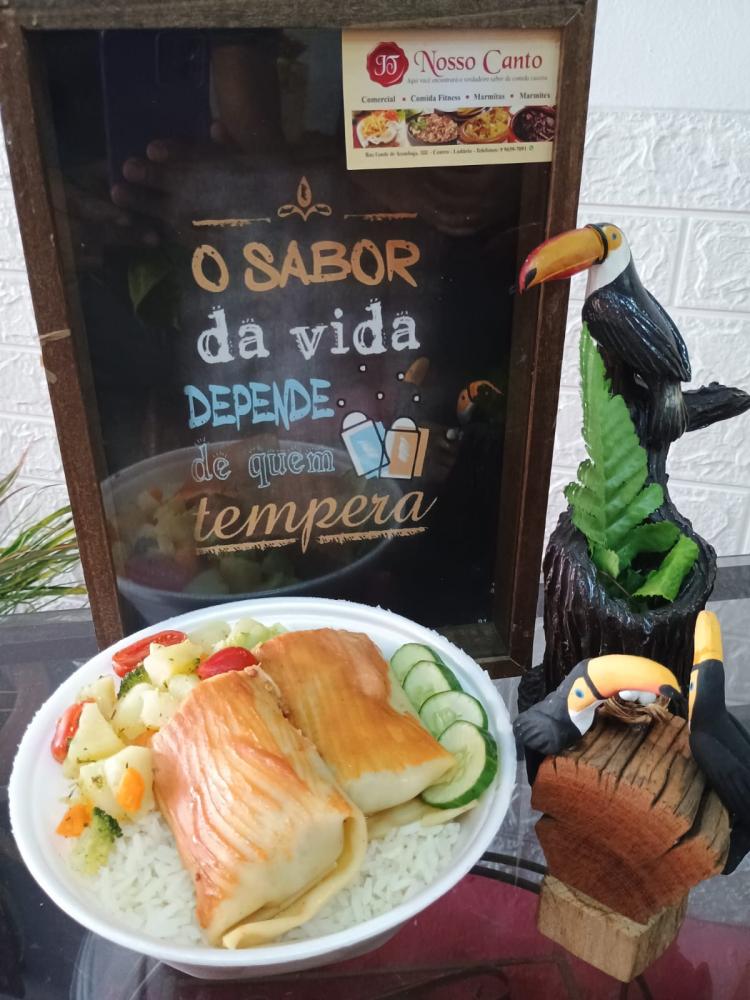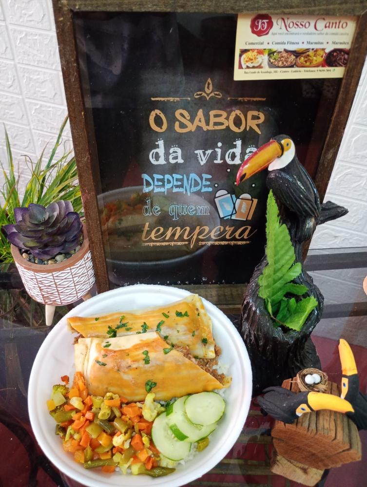 Marmitex de Calzone assado com Seleta de Legumes
