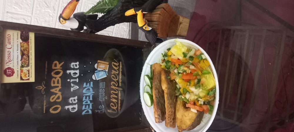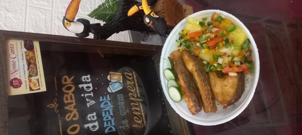 Marmitex de Posta de Tilápia com aipim e vinagre