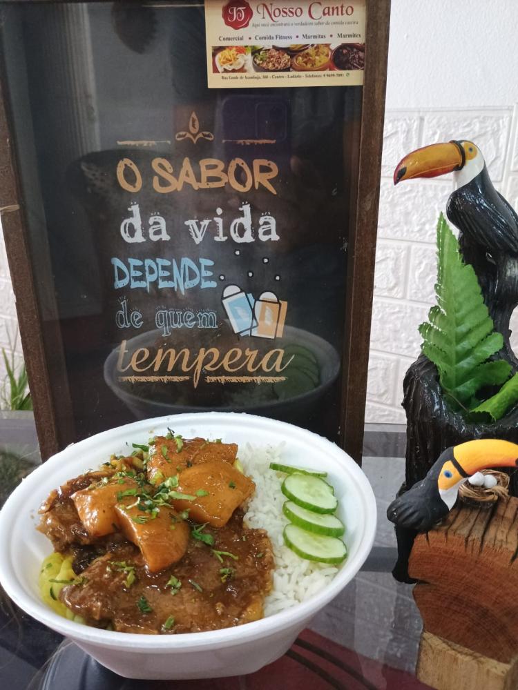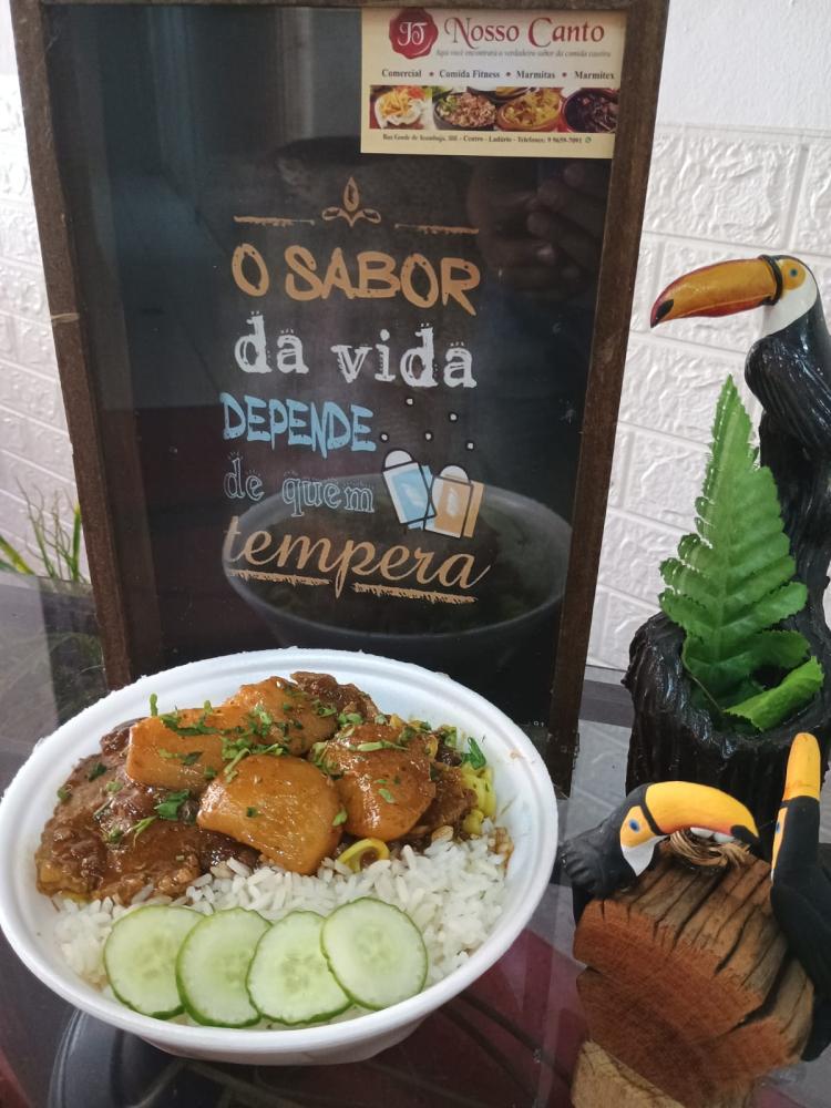 Marmitex de Escalopinho bovino ao molho madeira com batatas