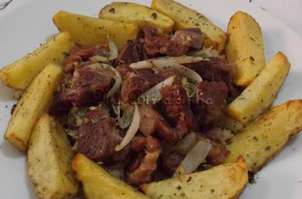Marmitex de Chuleta fatiada com batata rústica