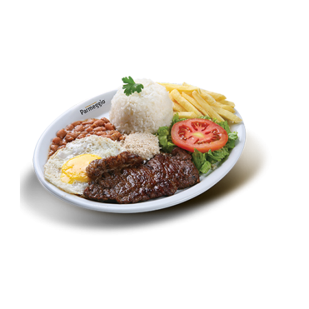 Acompanha:Arroz, feijão preto, macarrão e farofa.