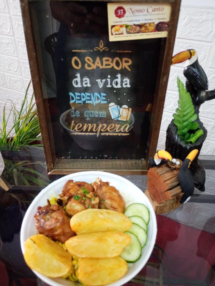 Marmitex de frango frito com batatas coradas