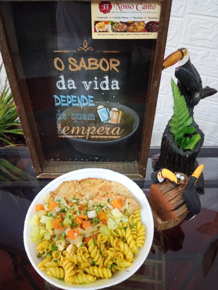 Acompanha:Arroz, feijão preto, macarrão e farofa