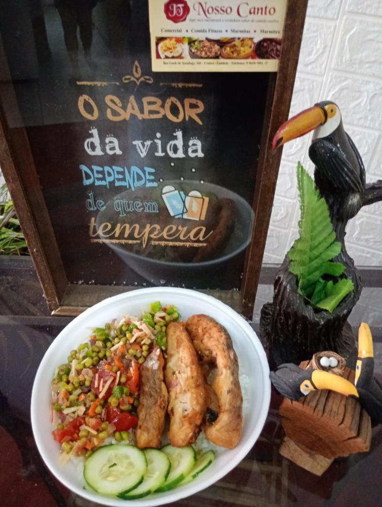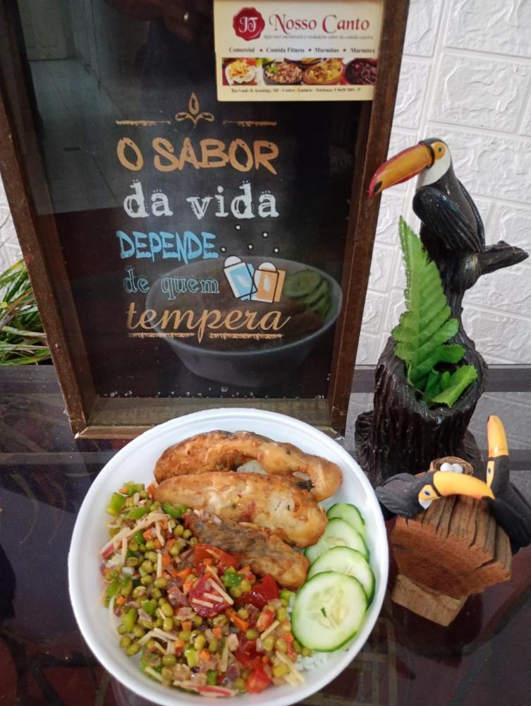 Marmitex de Posta de Tilápia frita com salada de feijão moyashi